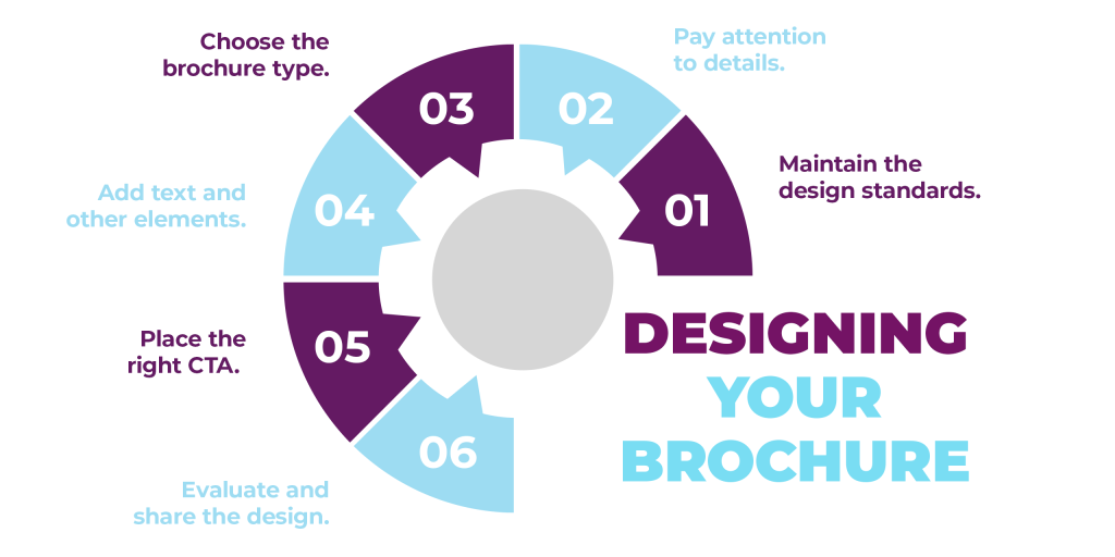 There is no set rule for the type of brochure you should design. As per Printaholic, there are at least 15 ways you can fold your brochure. For example, tri-fold, z-fold, bi-fold, parallel-fold, roll-fold, half-fold, etc.