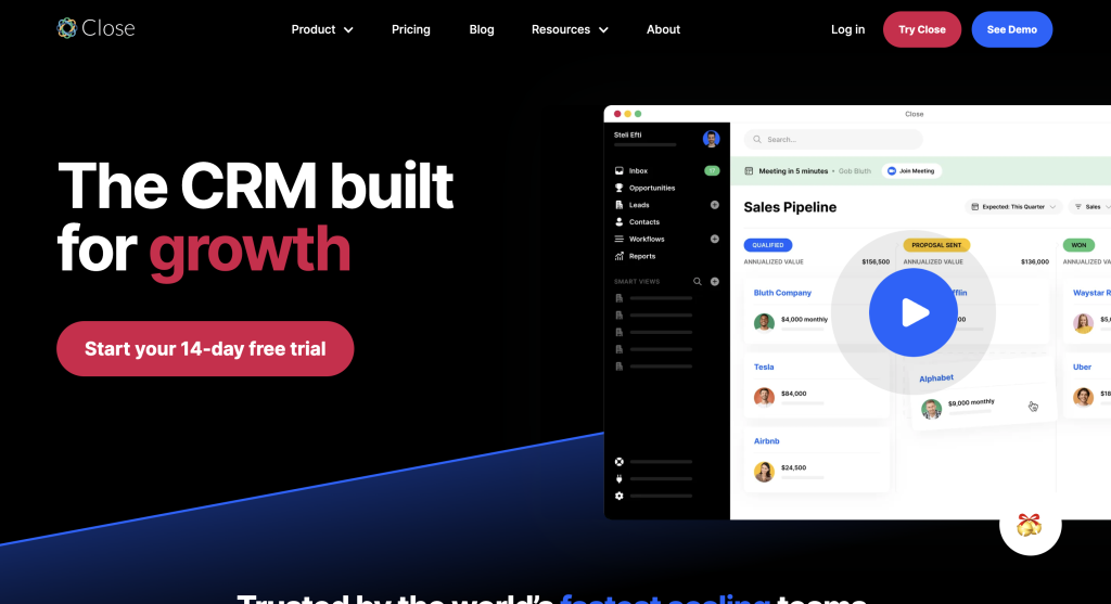 Close is a comprehensive CRM designed for salespeople engaged in cold calling. It offers a range of features to support the entire sales process.