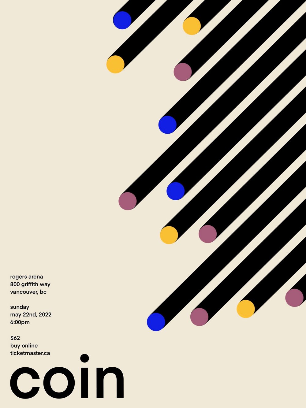 Strip down your message and design elements to their basic form. You can simply direct your audience’s focus to the essential details with minimalist designs. Enlarge the image or text to highlight it. “Coin” Band Poster in the Swiss Style by Chelsea W is a great example of a minimalist poster.