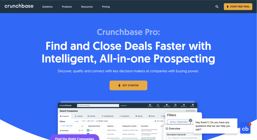 Crunchbase is a company database that aggregates insights on both private and public companies, making it an excellent tool for filtering prospects based on company, investor, and funding data.