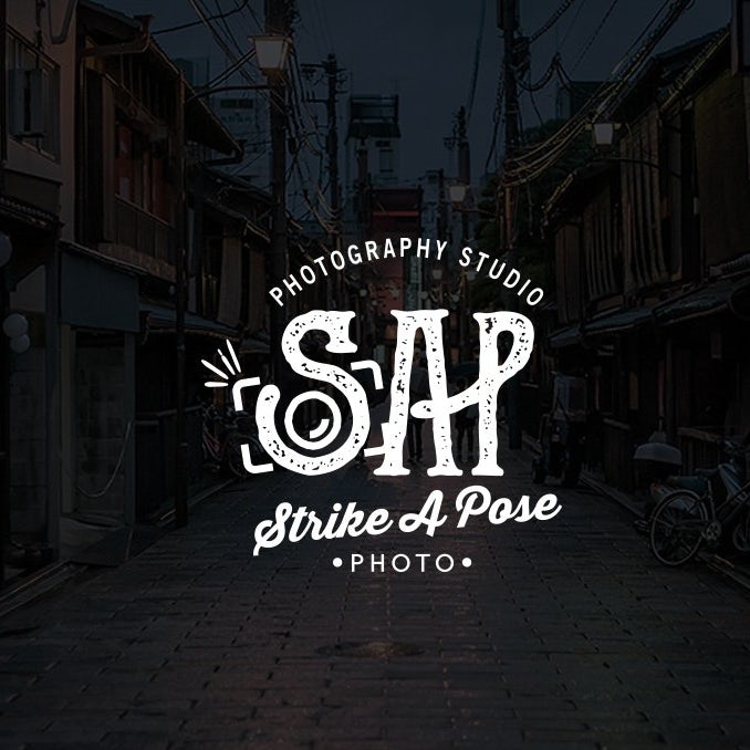 Look how Guitar studio uses negative space and letters to visualize a guitar in its logo. You can take a similar approach. Think of other common objects associated with photography, such as lens, shutter film, tripod stand, images, beams etc. See what fits the best.