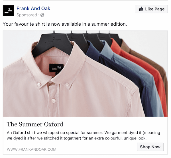 The beauty of this ad is that it’s speaking to the viewer personally – “Your” favorite shirt. This ad clearly is targeting a person who has previously made a purchase on their website. Now they are coming back to the person with a different version of the product. Who wouldn’t want to make another purchase of something they love?